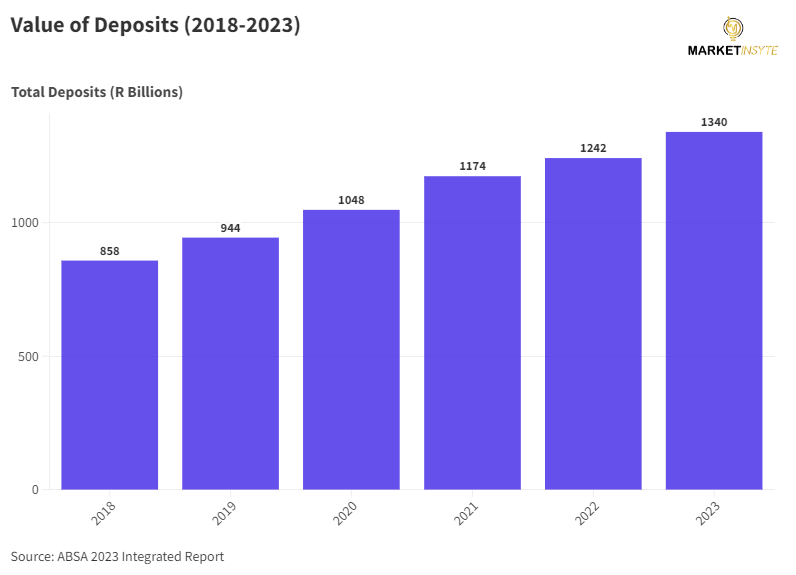 ABSA’s revenue increased at a 7% Compound Annual Growth Rate (CAGR) between 2018 to 2023. Although this was lower than expected, it reveals that ABSA’s financial performance was resilient amid the pandemic and other external shocks. It also shows that the Group came out of the post-separation phase (from Barclays) stronger than before: between 2018-2020, the Group gained R5.7 Billion in revenue compared to R15.4 Billion between 2020-20223. Furthermore, in 2023, ABSA’s retail and corporate clients deposited over R1.3 Trillion- approximately 1.6 X more than deposits in 2018.